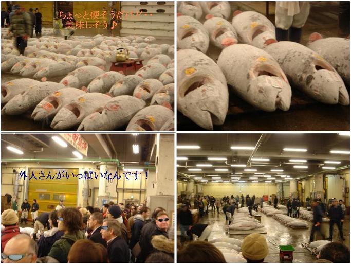 競り場の近くには、冷凍マグロの大群が美味しそうにゴロゴロしてます。