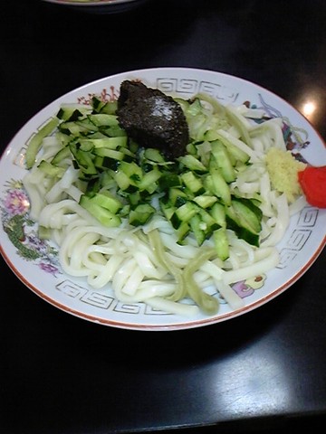 うどん?きしめん?のような麺にきゅうりやねぎを乗せ、味噌ダレを混ぜていただきました。なんかジャンクフードっぽくていい感じ(失礼かもしれませんが・・)。。結構ハマりそうな味でした。