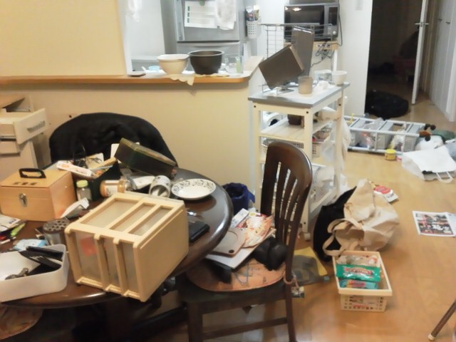 冷蔵庫からビールやビン物が飛び出たりと、前回よりも悲惨な状況に・・。せっかく片付け終わったのに、、、