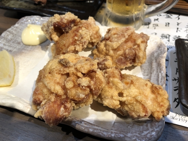 とりあえず「生」と焼き鳥を何本か注文。胃も最近は比較的調子良いので こちらも久しぶりの「塩」で、ハツ、ハツモト、つくねの黄身付き、唐揚げを注文。