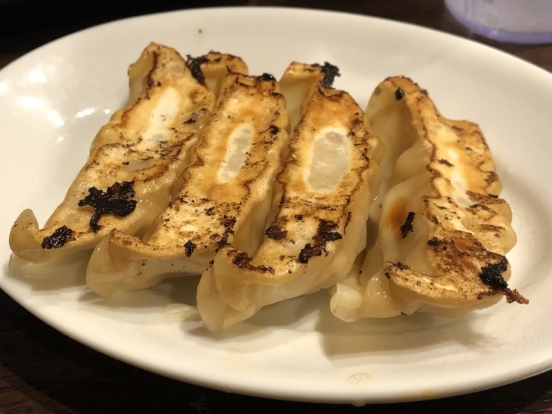 餃子は見た目が王将の餃子に似てて…味はまぁまぁだけど、肉汁がぶしゅーっと出る。皿からはみ出た💦