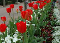 四季折々の花が楽しめます。「フラワーガーデン」で、赤・黄・白の3種類・2310球のチューリップが見頃となり、親子連れなどがお散歩に訪れていまよ。是非一度ご覧下さい。