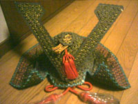 大人でも被れる大きさで最近では珍しいものではないでしょうか?来年初節句を向かえる 親類の皆さん5円玉兜は如何でしょうか?良いプレゼントになるのでは!!こちらは個人で制作された物です。