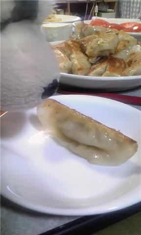 餃子を焼く係りはぽちぱぱと、ぽち家では決まっているので、ぱぱ、まま、ぽちの3人前をぽちぱぱに焼いてもらいました。