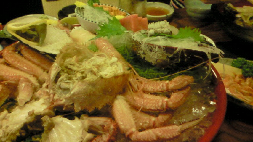 毛ガニやアワビの入ったお刺身盛り合わせ