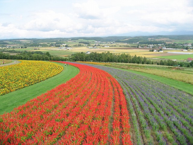 北海道は冬の札幌、函館しか行ったことがないので、こんな雄大な風景、見たことがありません。良く見ると、緑の所に人影らしきものが...