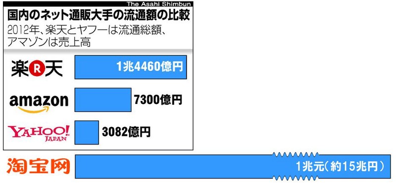 日本国内ネット通販の流通額の比較+中国のタオバオ