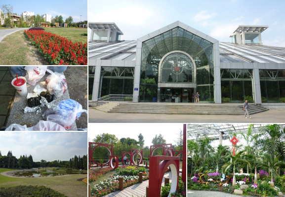 上海体育館から車で10分のところに、敷地面積は81.86ヘクタールという中国最大の市立植物園がある。植物園内は、牡丹園、桂花園(金木犀)、竹園、玉蘭園(木蓮)、水生植物園(蓮など)、薔薇園、単子葉植物区、四季山、盆景園(盆栽)などのセクションに分かれ、希少植物や絶滅に瀕した植物108種もある。盆景園は4ヘクタールあり世界でも最大級とのこと。中に滝がある大きなガラス張りの温室は4,900平方メートル、高さ29.4メートルもあり熱帯雨林の植物が展示されています。入場料15元、温室、盆景園などの入館料をセットにしたチケット40元です。ちなみに、地下鉄を乗り継いで三号線からも直接歩いていけます。(ちょっと遠いが・・)おにぎり持参で青空の下、ベンチに腰掛けて昼食しました。めっちゃウマイ!久しぶりのオニギリ!ちなみに具はない。ゆっくり歩いて散策するのが一番だが、広い園内を徒歩は厳しいので2人乗りの4輪自転車(1時間40元)を借りました。ちなみに保証金が200元。